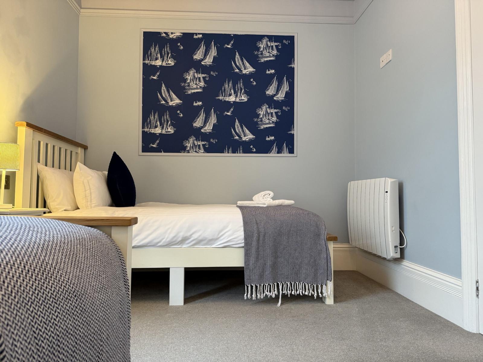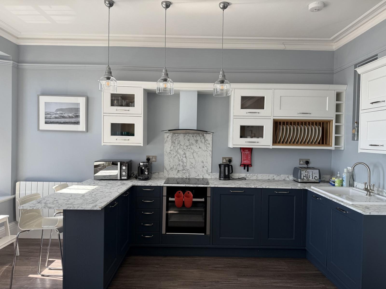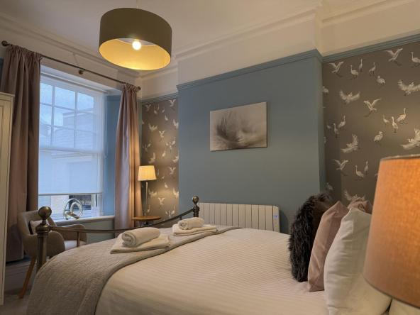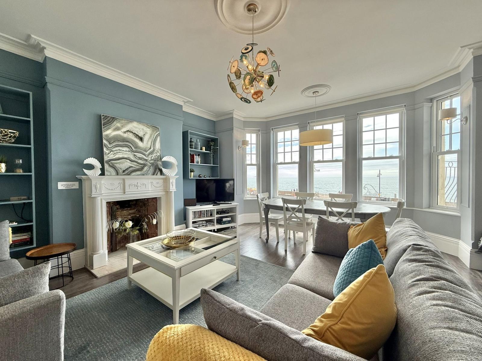 The Eastleigh is a contemporary first floor apartment overlooking Seaton seafront with stunning sea views from the open-plan lounge, dining, and balcony area. The stylish flat can accommodate up to 6 guests in 3 bedrooms - the master bedroom has a king size bed and an ensuite shower room, there is a double bedroom and a twin room with two single beds.